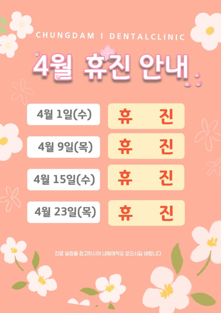 📢 청담i치과 4월 휴진 안내